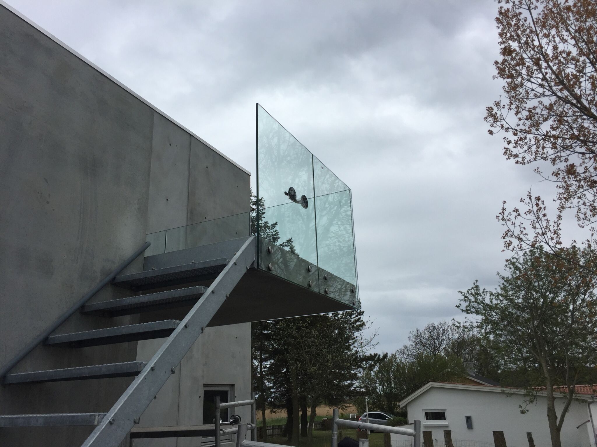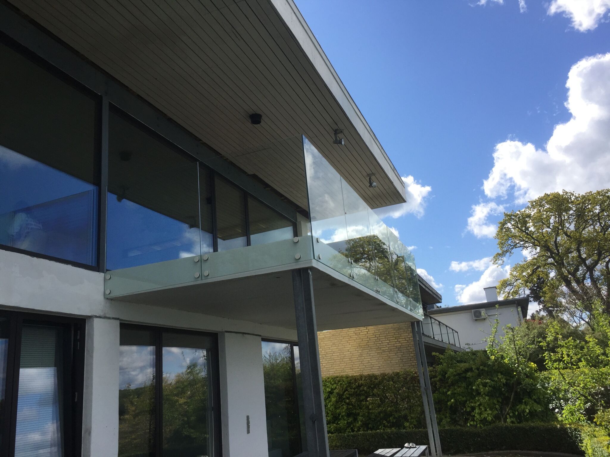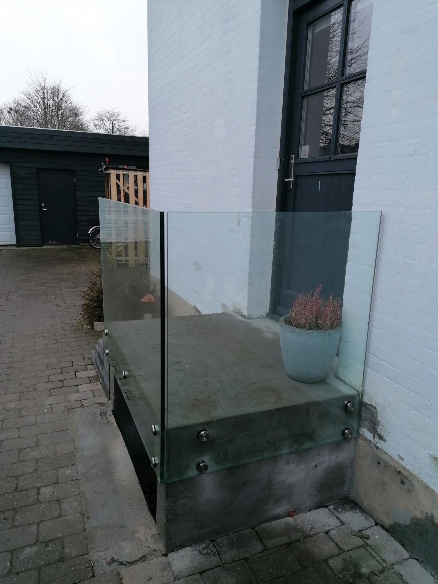 Glasværn – udendørs glasværn monteret med glasbeslag