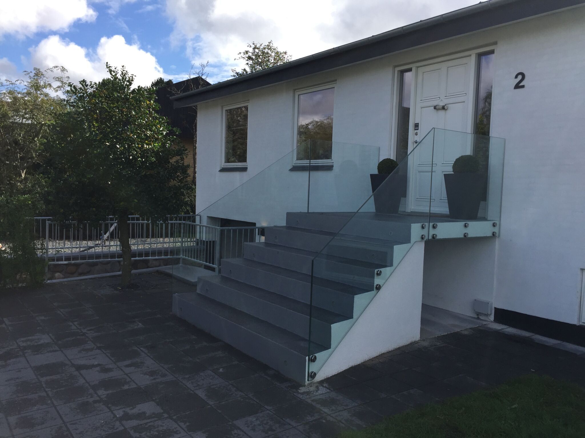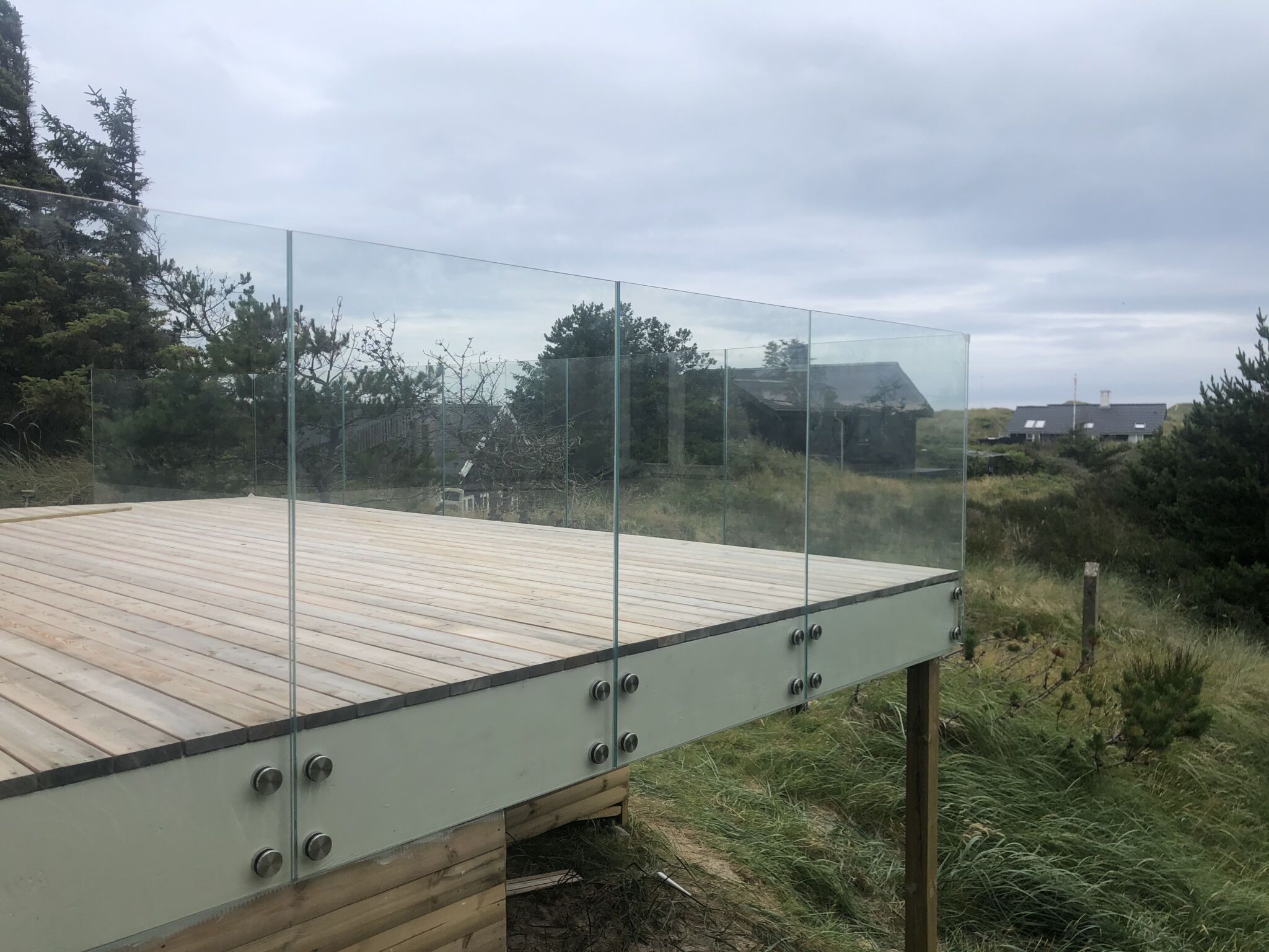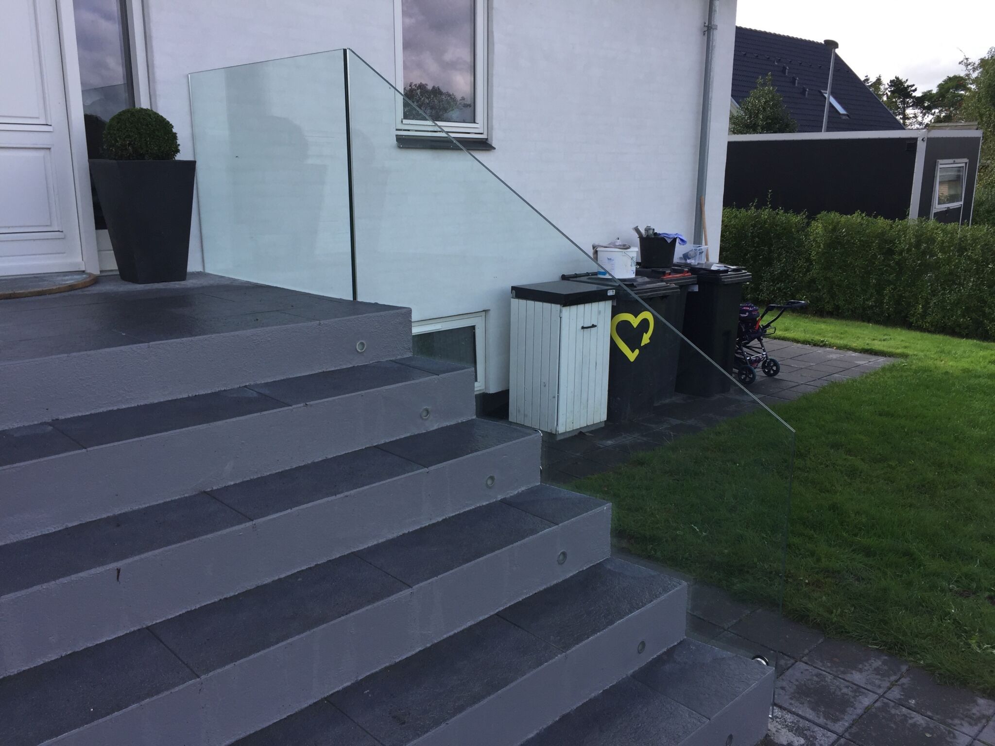 Glasværn – udendørs glasværn monteret med glasbeslag